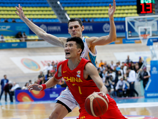 8月25日,中国球员孙铭徽在与哈萨克斯坦队的比赛中突破。视觉中国供图