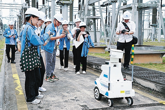 大学生记者被平果变电站内的智能巡检机器人吸引