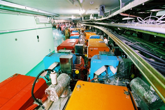 在北京西郊地下,占地5.75万平方米的北京正负电子对撞机(BEPC)正在运行着。202米长的直线加速器通过两条输运线连接着周长240.4米的环型加速器,正负电子束会被加速到符合实验需求的能量,最终抵达最南侧的对撞点。