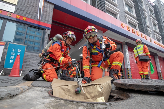 1月29日,四川成都。在金牛区消防救援大队花牌坊消防救援站,消防员们正进行日常训练。汪龙华/摄
