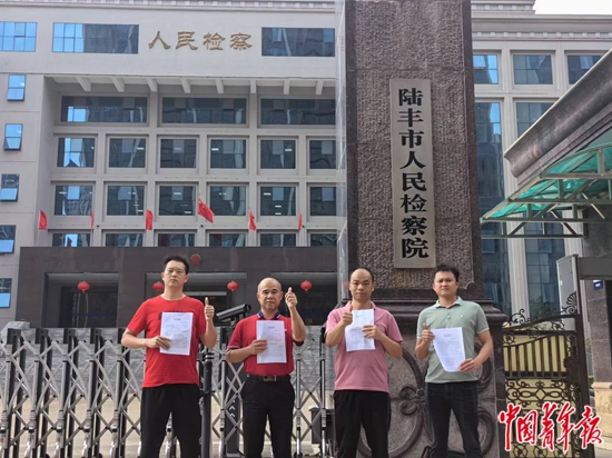 4月2日,周建华等4人在广东省陆丰市人民检察院领取不起诉决定书。中青报·中青网记者 魏晞/摄