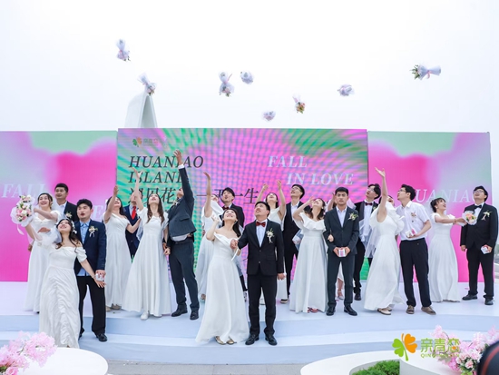5月20日,来自浙江省11个地市的新人代表在舟山市花鸟岛共同参与集体婚礼。7年来,浙江共青团依托“亲青恋”平台,开展各类交友联谊活动4774场,服务单身青年150万人次。 团浙江省委供图