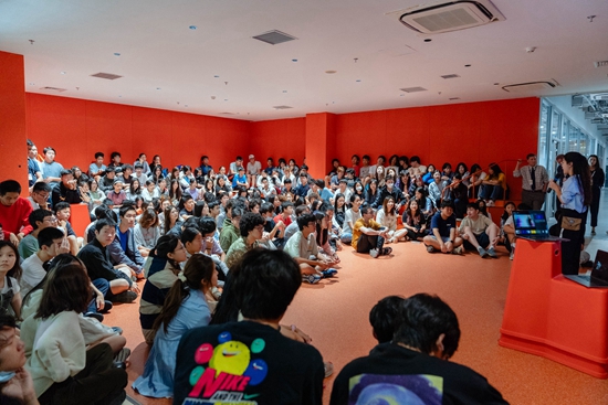 学校坐落在奥林匹克森林公园的环形场馆内,置身其中,像走进一家科创公司。四处都是颜色浓烈的海报涂鸦,推开一扇门,可能看到一个设计工作室,也可能进入一个挂满钻头、锤子和胶枪的“创客空间”。