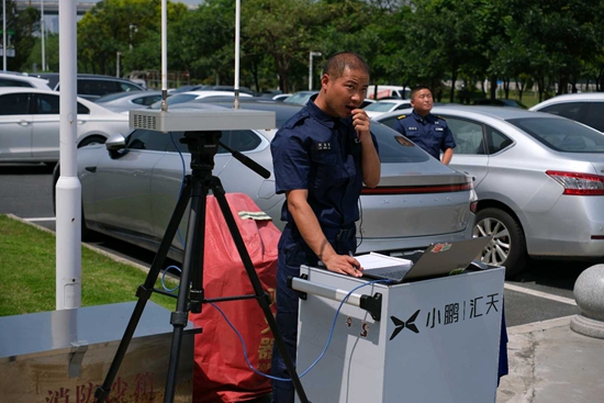 5月15日,广东省广州市,小鹏汇天广州研发中心,“高质量发展调研行”主题采访活动现场。一名试飞工程师设定自动航线,监测实时飞行情况,保障飞行器的飞行安全。