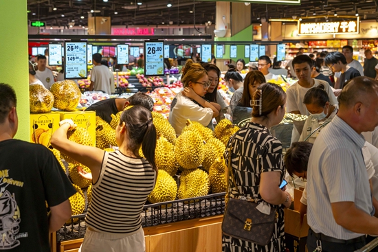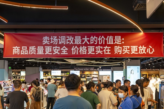 7月21日,武汉,近期向胖东来学习调改重新开业的中百仓储超市,引得众多市民消费者前来选购,很多地方都排起了长队,生意非常火爆。视觉中国供图