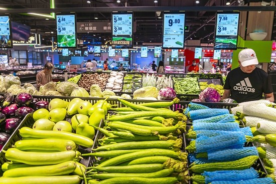 8月25日,湖北武汉,超市里的新鲜瓜果蔬菜。视觉中国供图