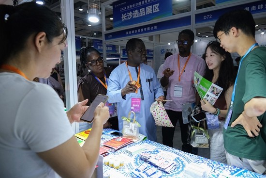 9月1日,湖南长沙,在国际会展中心举行的2024跨境电商交易会上,参展商在展区参观交流。视觉中国供图