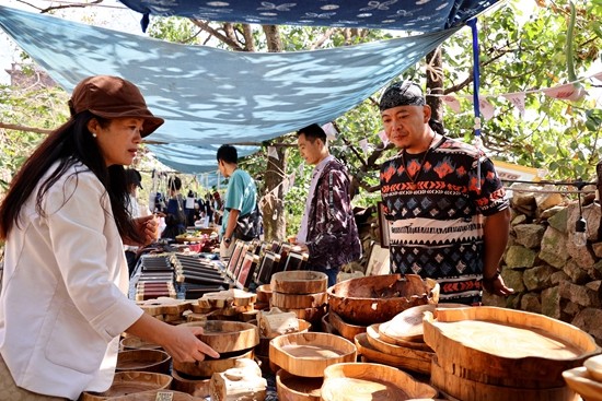 9月21日,青岛市西海岸新区灵山卫街道毛家山村,齐鲁之间第17期杏运市集开集,游人和市民纷至沓来购买各种文创产品。视觉中国供图