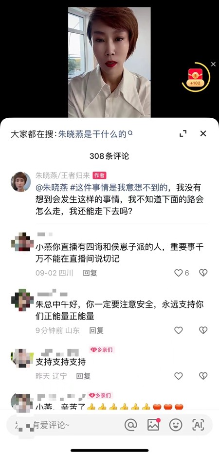阿杜团队一名主播“朱晓燕”账号的评论区。页面截图