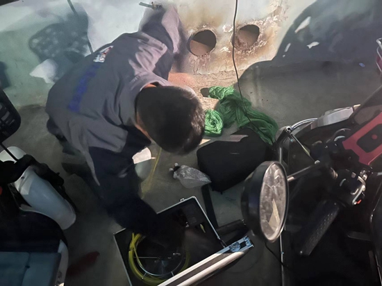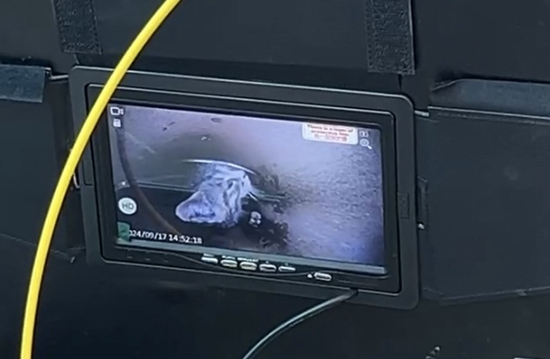 9月17日,太原某小区,救援人员的摄像设备拍下卡在通风管道里的小猫。裴思童/摄