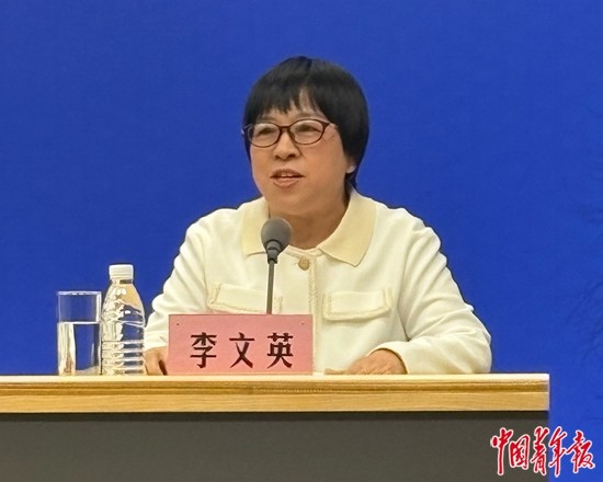 10月8日,来自河北省石家庄市新华区的群众李文英,在国家卫生健康委的新闻发布会上回答记者提问。中青报·中青网记者 刘昶荣/摄
