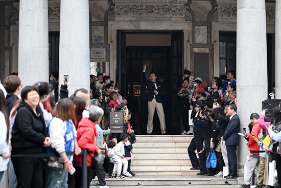10月26日,演员在天津金街表演话剧《日出》片段。当日,曹禺名剧《日出》在其故事背景地——惠中饭店,现天津金街步行街大铜钱广场进行首场常态化演出。天津北方演艺集团、天津人民艺术剧院将于每周六和节假日(极端天气除外)的下午2:30在这里为市民游客带来《日出》等经典话剧的街头演出。新华社记者 李然/摄