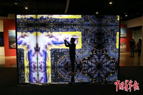 10月26日,北京中华世纪坛,一位小朋友在名为“盗梦空间”的摄影艺术装置里拍照。近日,北京国际摄影周2024在中华世纪坛举行。当天正值周末,不少家长带着孩子前来观看展览,让孩子们徜徉在光影世界里,接受摄影艺术的熏陶。中青报·中青网记者 陈剑/摄