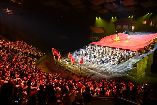 10月3日,重庆1949大剧院内座无虚席,观众正在观看以红岩文化为创作背景的大型红色历史舞台剧《重庆·1949》。 视觉中国供图