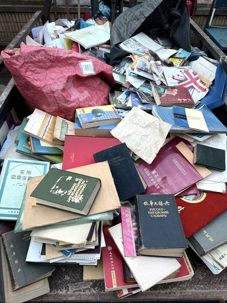 王锐的书籍和手稿被发现时,在一辆废品站三轮车上。受访者供图