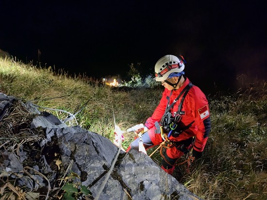 南宁市红十字搜救救援队在南宁大圣山搜救现场。陈贵禧/摄