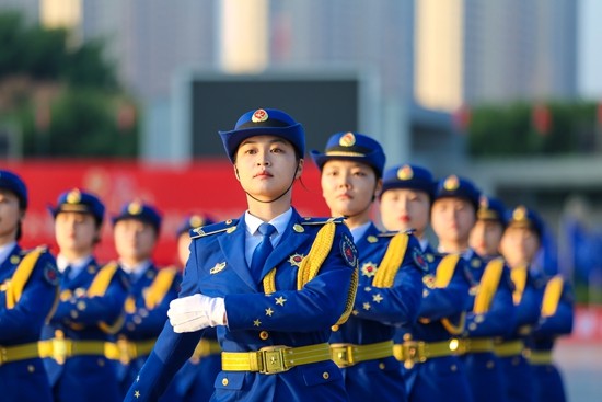 “我们护卫的不仅是国旗,更是心中的信仰。”在这场比赛中,广东医科大学参赛选手共20位,均为00后女生,林雨萱是其中的一员。两年前,她怀着对身着礼服帅气模样的向往,决定报名加入国旗护卫队。那时,有人不禁发出了疑问,“一个柔弱的女孩能完成这份艰巨的任务吗?”林雨萱的回答简洁又坚定:“我能。”
