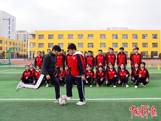 北京体育大学支教教师在上足球课。中青报·中青网记者 杨屾/摄