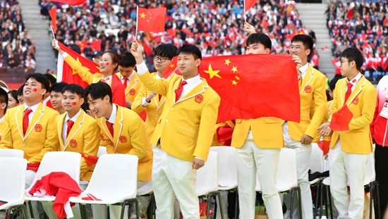 中国选手在第47届世界技能大赛颁奖典礼上亮相。人社部供图