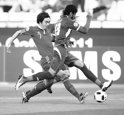 1月8日,中国足球队在亚洲杯赛首场比赛中,以2∶0战胜科威特队。图为双方球员在比赛中拼抢。CFP供图