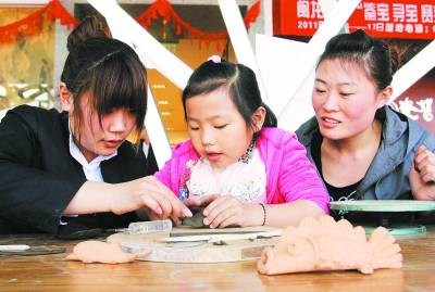 北京闽龙陶瓷艺术馆的课外辅导员正指导小朋友用陶泥制作小工艺品。据介绍,作为当地的青少年教育基地,该艺术馆在近期举行的第三届“陶瓷文化节”期间,将组织更多的中小学生前来参观,激发学生们对我国数千年陶瓷文化的热爱。
