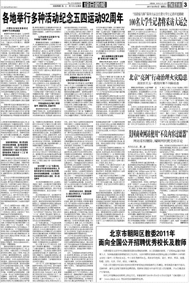 各地举行多种活动纪念五四运动92周年