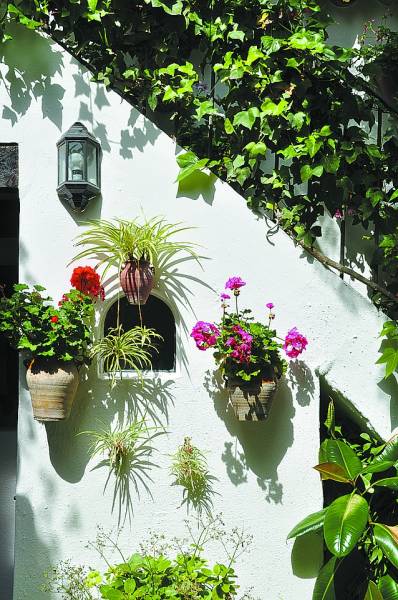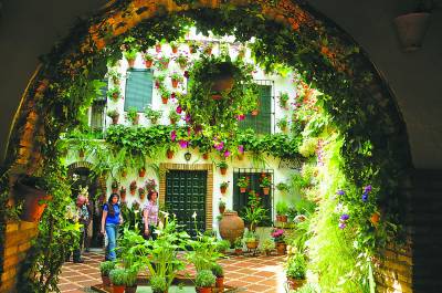 源于摩尔人的历史,在安达卢西亚有很多摩尔式的庭院,它们在科尔多瓦被无限发扬光大。无论是王公贵族还是平民百姓,都热衷于装点庭院。这些世代相传的庭院,大多装修精美。色彩艳丽的瓷砖、柠檬树和橘树,都是不可或缺的元素。摩尔人的庭院,是小型的四合院:周边是房屋建筑,中间是露天庭院。讲究的大户人家,庭院正中还有喷泉,四周种满花草。有些庭院中间用彩砖铺地,花儿就种到了墙上,在炎热的西班牙南部,一进庭院,满眼鲜花,满耳水声,心就会立刻凉爽下来。