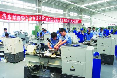 “311就业导向教育模式”之一,学生全真实训。图为汽车学院学生实训