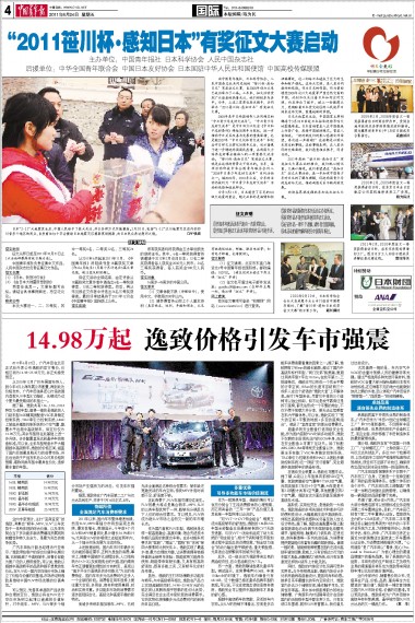 “2011笹川杯·感知日本”有奖征文大赛启动