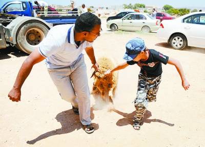 6月21日,女方的家人把作为聘礼的两只羊拖回家中。战前女方往往要求男方赠送十只羊,但是现在生活困难了,女方和男方的家庭都能互相理解。 前线激战正酣,但生活仍在继续。6月22日,35岁的瓦利德迎娶了28岁的法乌齐娅,在班加西开始了他们新的生活。瓦利德告诉记者,武装冲突开始后班加西的婚礼发生了很大的变化。战前婚礼的排场很大,婚礼前男方和女方家的门口都要搭起大帐篷,邀请亲朋好友和邻居一起聚餐、娱乐,这个过程往往要持续一个星期甚至更长。但是现在班加西举行婚礼都一切从简,一方面是因为生活比以前困难了,但更重要的是前方还在打仗,每天都有人牺牲,这是对逝者的尊重。 新华社记者 戴旭明摄 |