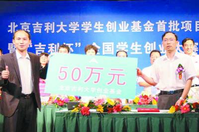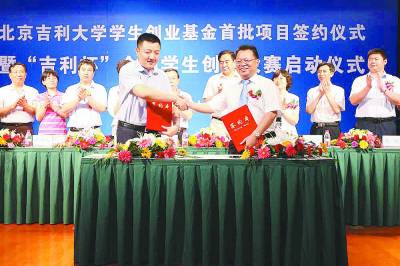北京吉利大学学生创业基金正式设立一年,社会各界反响热烈,吸引社会各界人士加入到创业基金中,为创业基金注入源源不断的资金支持。6月17日,北京吉利大学创业基金进入新的里程碑,北京吉利大学学生创业基金首批项目签约仪式暨“吉利杯”全国大学生创业大赛启动仪式在北京吉利大学隆重举行。海纳通投资(北京)有限责任公司在发布会现场宣布出资3000万元投入北京吉利大学学生创业基金,扶持创业基金的持续运作,为社会更多有志青年提供实现梦想的舞台。海纳通投资(北京)有限责任公司的加盟是对北京吉利大学创业基金的肯定,更是创业基金的强大后备力量。而北京吉利大学联合腾讯网等知名媒体共同举办的以微博在线参与为主要形式的“吉利杯”全国大学生创业大赛更是成为现代大学生创业工作的助推器。
