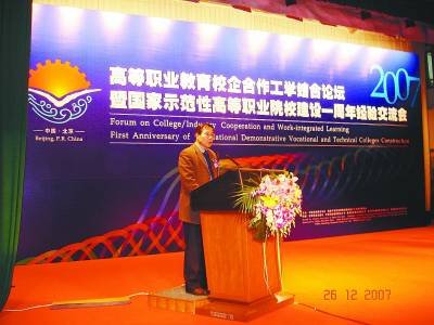 院长张朝晖在全国高等职业教育校企合作工学结合论坛暨国家示范性高等职业院校建设一周年经验交流会上发言