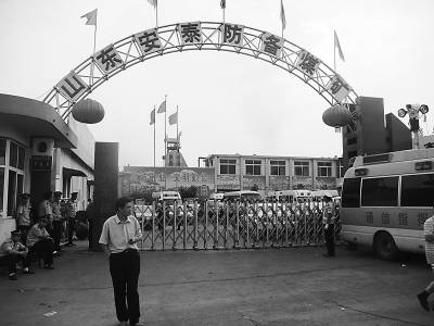 山东枣庄薛城区防备煤矿大门口。