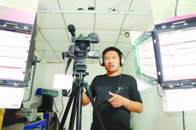 今年32岁的河南汤阴县伏道乡水磨湾村农民李绍锋,是一个连初中都没有读完的小学毕业生。他因贫困辍学后,为了追逐梦想,当过木工、砖窑搬运工、乡村婚礼摄像师,边打工边刻苦自学钻研影视制作。他借来字典和书本,一个字一个词一段话地学;不懂电脑,他买来人家当废品卖的电脑,边拆边装边摸索里面的规律和奥妙。历经几年的苦学和打拼,李绍锋如今不仅创办了属于自己的私人电影工作室,还跃身成为当地数一数二的“影视大腕”。图为李绍锋正在为客户制作题片。