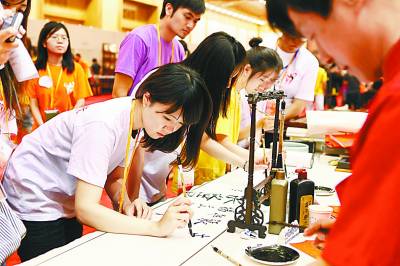 两岸青年朋友共同体验中华优秀传统文化。
