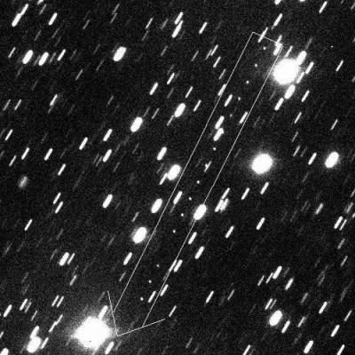 6月27日晚上,2011MD的“真身”出现了。在赵海斌的电脑里,它就像蝌蚪大小的小亮点或者小长条。赵海斌平时观测到的小行星速度比较慢,角速度差不多是一天0.2度,在有限的曝光时间里,拍出来的照片看上去和恒星一样,成像是一个圆点,需要在多幅图片中比较,才能看出它的运动变化。这次观测到的小行星2011MD速度非常快,最快的时候可以达到一分钟一度,所以在一幅图片里,曝光一两分钟就可以看到它拉出的长条。