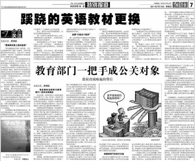 “如果真的从教学角度考虑的话,现在即便是换教材,也不应换成人教版的,而要换成外研社版(由外语教学与研究出版社编写)的,因为现在我们这儿高中英语用的就是外研社版的,这样好有个衔接呀。”上述教研人士补充说道。