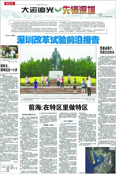 深圳的天赋使命就是试验。深圳流着改革的血液。由于深圳的先锋性,这座城市的社会发育总是比全国其他城市早走一步。深圳的现实颇有些梦幻:她率先消灭了农村和农民,孕育了最密集的中产阶层,她拥有参政的民间智库,民办的公募基金,破除传统体制的大学,她的最低工资标准最高,人均购书量最大,个人慈善捐款最多,义工比例全国第一……