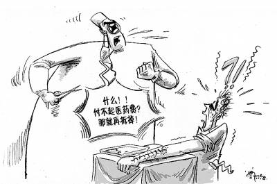 8月5日晚,一名曾姓打工青年手指受伤,到武汉市第三医院治疗,手术完成后发现所带钱不够支付医疗费,缝好的伤口又被当场拆线,甚至没有使用麻药。(8月7日《楚天都市报》)