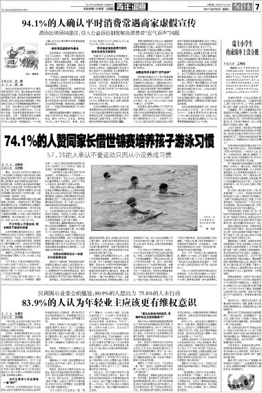 74.1%的人赞同家长借世锦赛培养孩子游泳习惯