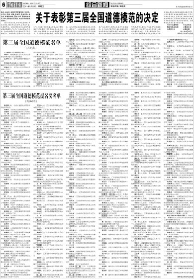 关于表彰第三届全国道德模范的决定