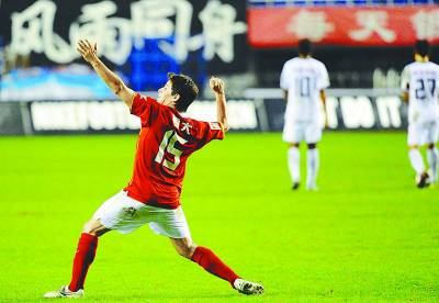 9月28日,恒大队外援孔卡在庆祝胜利。