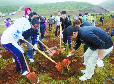 四川省昭觉县,来自瑞士诺华公司的环保志愿者在种树。“西南林业碳汇、社区和生物多样性项目”日前组织植树造林活动,旨在利用森林碳汇抵消碳足迹,将在4年内完成约1000多万棵树木的种植。