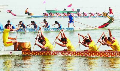 10月15日,第三届中国湖泊休闲节龙舟赛在宁波市东钱湖水域举行。本报记者 李建泉摄
