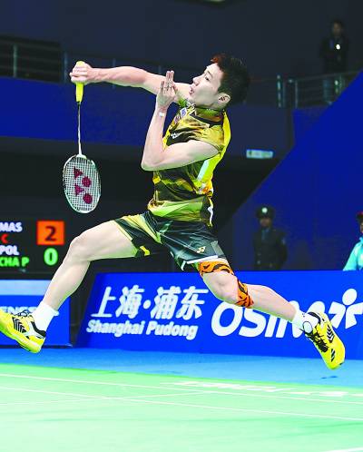 11月23日,印尼球员李宗伟在中国羽毛球公开赛男单首轮比赛中,以2∶0战胜对手。CFP供图