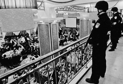 11月25日晚7时许,佛山警方突袭位于南海大沥的一家四川特色酒店,抓捕出席“满月酒”晚宴的四川籍涉黑团伙骨干。团伙头目秦某波等13名主要成员被一网打尽,当场缴获涉案汽车5辆、斧头和大刀共7把。