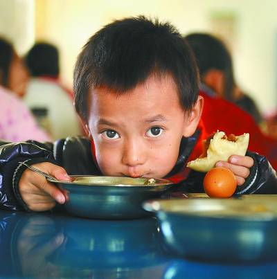 12月19日,团福建福州市委免费午餐计划启动的第一天,福州市永泰县3所小学204名孩子吃上了免费午餐。 在此之前,永泰县富泉小学、城峰中心小学等小学近300名孩子在学校就餐,但因当地贫困落后,这些孩子每餐伙食都在两三元,饭菜根本谈不上营养。在富泉小学,许多孩子的碗里只有青菜,有人问:“你们为什么不吃肉呢?”孩子们说:“我不爱吃肉”。一个孩子回答“为什么没买鱼”时则说:“妈妈说,吃鱼会感冒。” 为此,今年12月3日到10日,共青团福州市委向社会发起募捐营养午餐善款的活动,活动得到了各界爱心人士的热情支持。短短7天时间,社会各界爱心捐款达44万余元。这些善款已存入专门账户,为永泰县数百名山区孩子提供一年每顿5元标准的免费午餐。 林朝阳/CFP |
