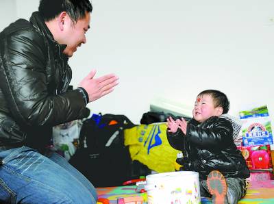 2月16日,姚云峰陪小路庆做游戏。36岁的姚云峰家住浙江省长兴县城,是长兴户外俱乐部的负责人。他有房有车,事业有成。在外人看来,单身的他最应该着急的是娶妻生子。而一年前,姚云峰却把一个名叫“路庆”的弃婴从福利院带回家抚养照顾,未娶妻却先带了个孩子回家,这让家人朋友着实不解,甚至冷言冷语相待。尽管如此,姚云峰却一直用心做着“奶爸”,照料着路庆的生活起居,并自掏腰包给他治病,送他上幼儿园,让这个寡言少语、浑身疥疮的孩子变得快乐健康。