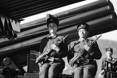 朝鲜人民军最高司令官金正恩(上图)以及朝鲜党政军领导人出席仪式。随后,朝鲜人民军陆海空三军官兵举行阅兵式。朝鲜陆海空三军官兵和工农赤卫队方阵通过主席台,接受人民军最高司令官金正恩的检阅。当天接受检阅的还有火箭炮、装甲车等武器方阵。