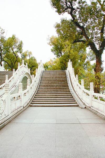 榕湖上有很多桥,对着古南门的是一座仿颐和园玉带桥的古榕双桥。虽说是仿古,却与景色相宜,很是自然。拾级而上,从榕树中望去,是曲折的类同北斗七星的七星桥。再向前看去,玻璃桥影影绰绰。玻璃做的桥总是引人好奇,在郁绿湖水的映衬下,显得颇为晶莹透明。近看去,桥身小巧,在桥上来回走一遭,还真有些童话世界的趣意。